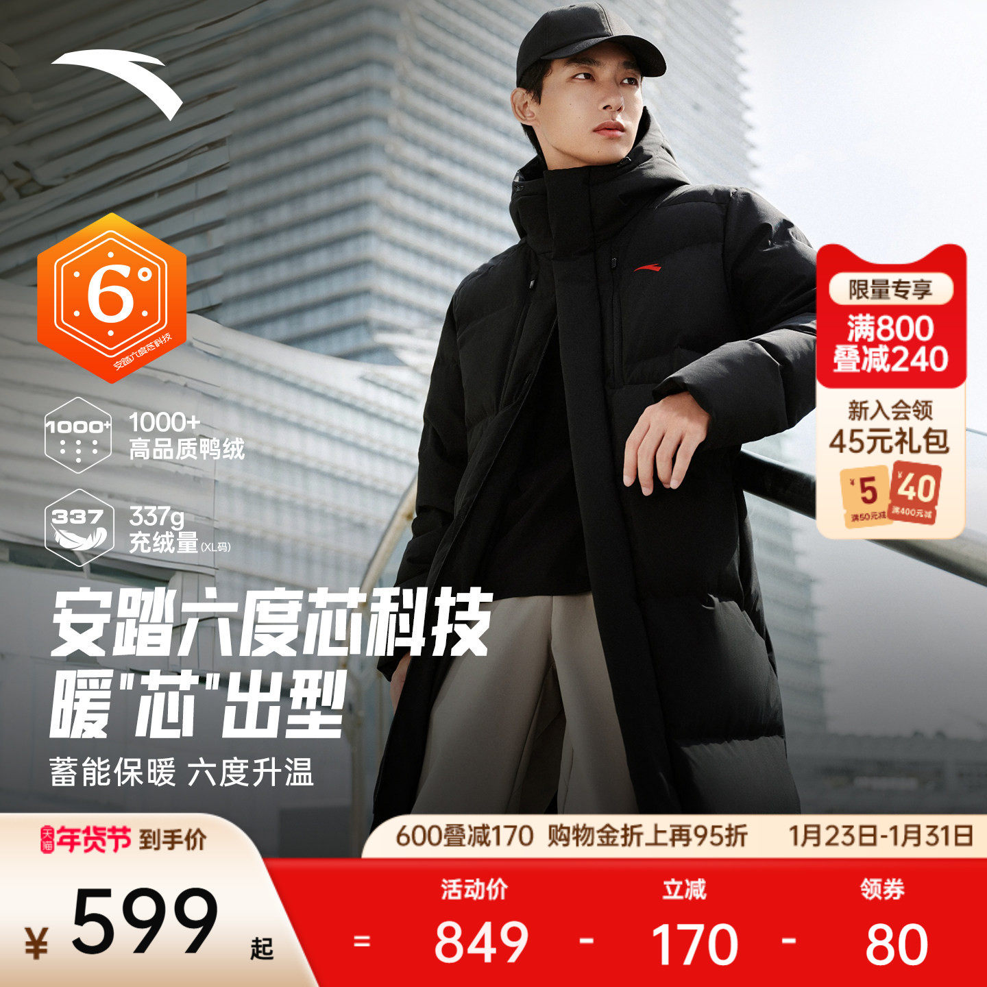 安踏六度芯长款羽绒服男中长款过膝2026年新款冬季保暖连帽外套男
