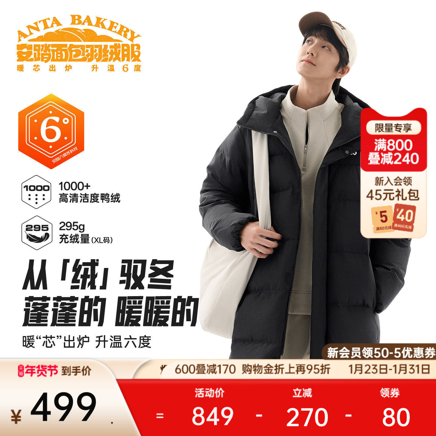 安踏面包羽绒丨长款过膝运动羽绒服男士2025冬季新款保暖连帽棉服