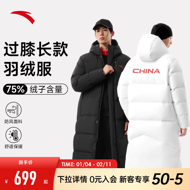 安踏羽绒服长款男款2025冬季新款过膝加厚体育生中国男士羽绒外套