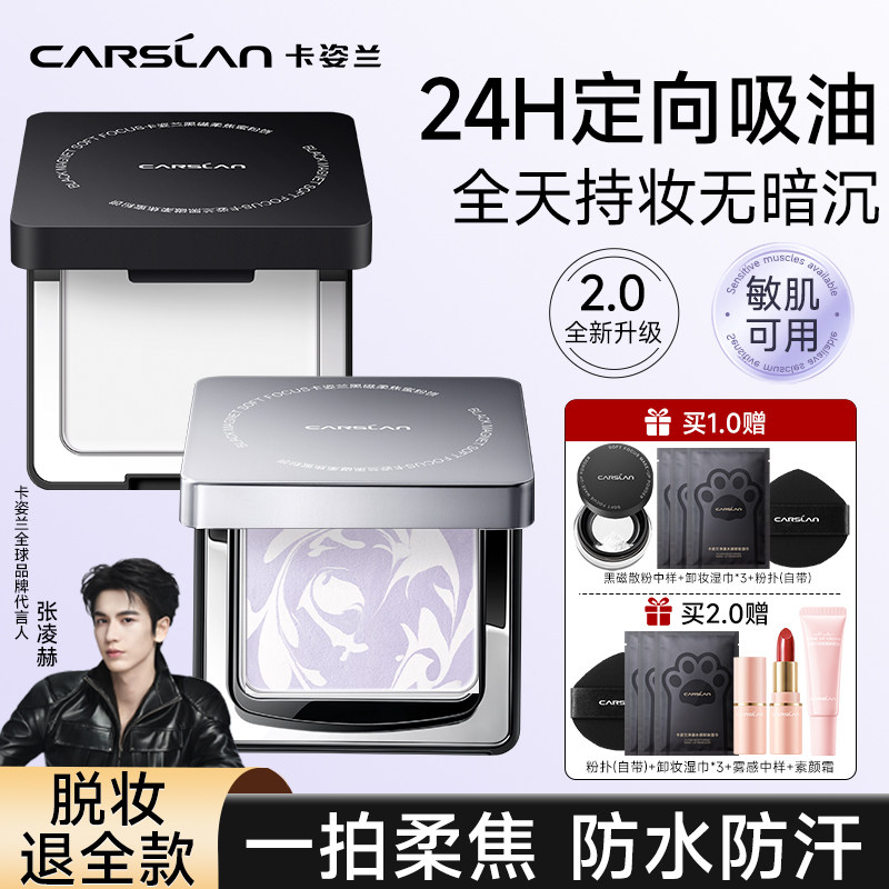 卡姿兰黑磁蜜粉饼持久不脱妆控油散粉紫色防水补妆定妆女官方正品