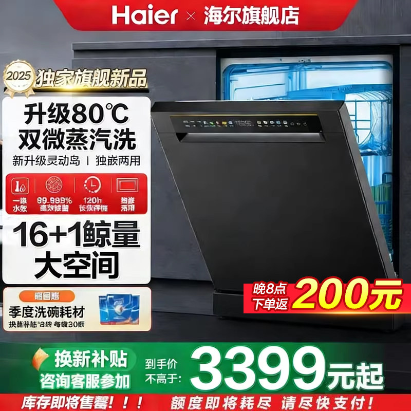 【旗舰新品】海尔独嵌两用式洗碗机L5变频大16套全自动家用智能机