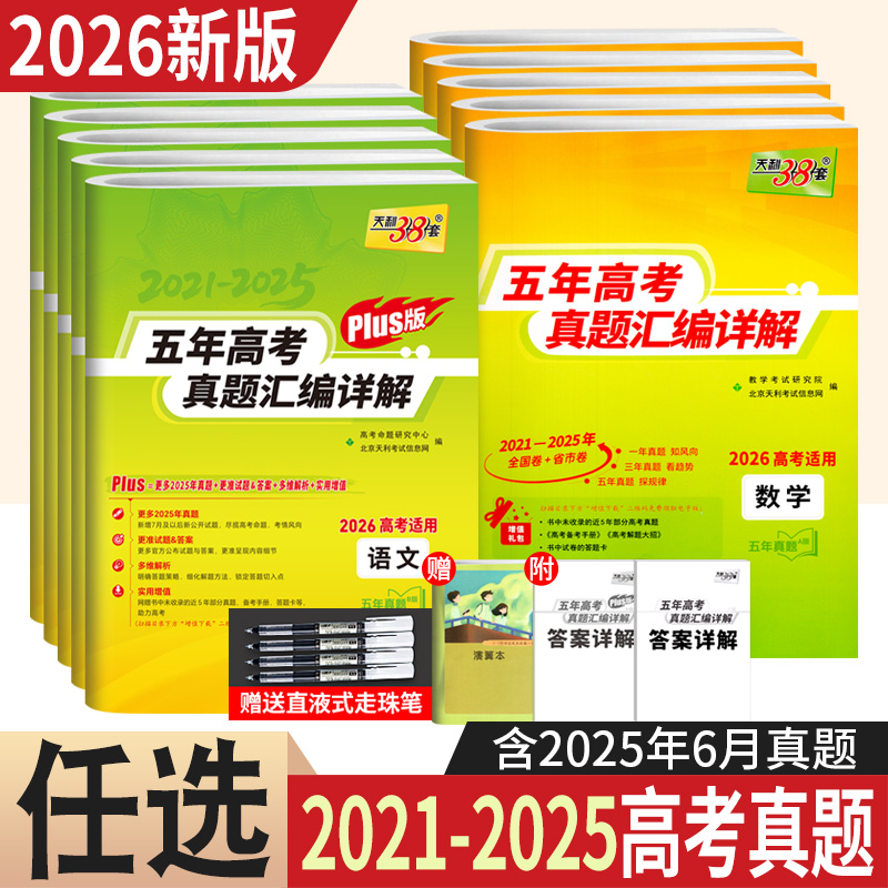 2026天利38套数学语文英语物理化学生物政治历史地理新高考全国试卷2021-2025五年十年高考真题汇编详解PLUS版高三中总复习资料书