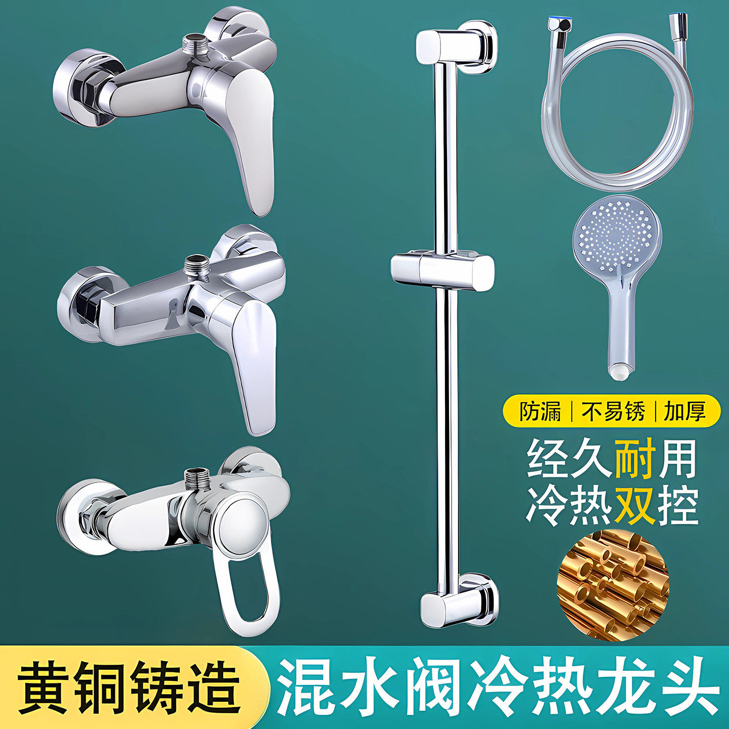 全铜淋浴水龙头混水阀简易沐浴花洒套装洗澡浴室分体冷热龙头增压
