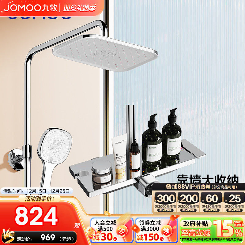 蒙娜丽莎M19大置物架增压手持数显花洒卫生间多功能沐浴花洒套装