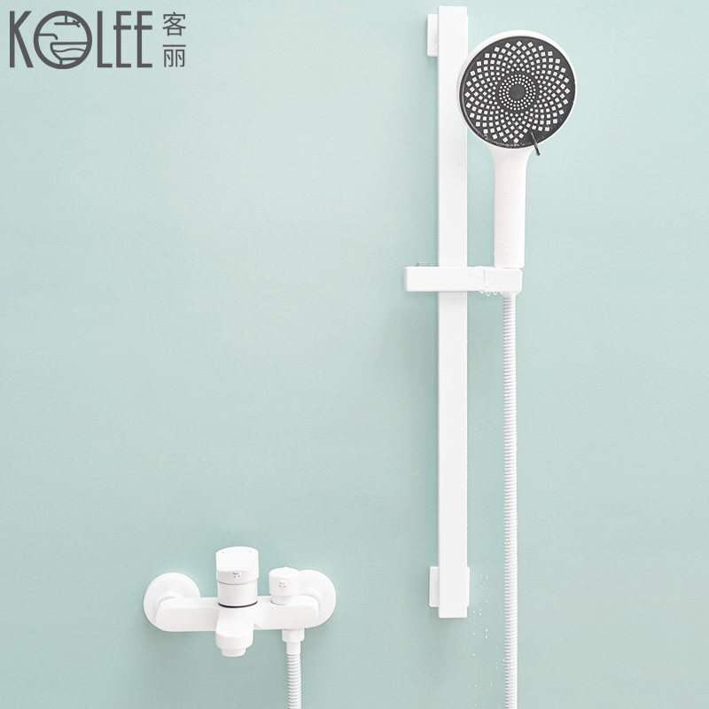 白色淋浴龙头全铜混水阀沐浴花洒套装浴室浴缸混合开关冷热水龙头