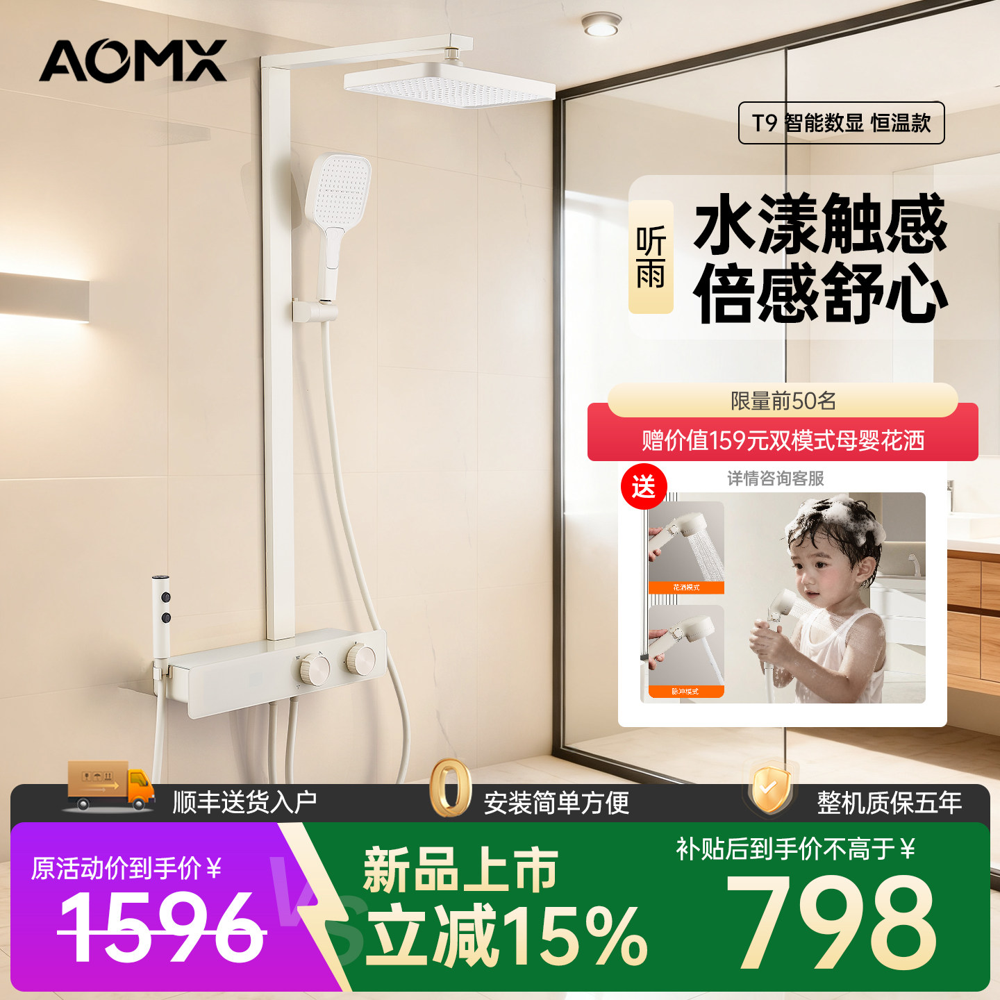 AOMX全铜奶油风淋浴花洒套装浴室超大置物增压洗澡沐浴花洒套装