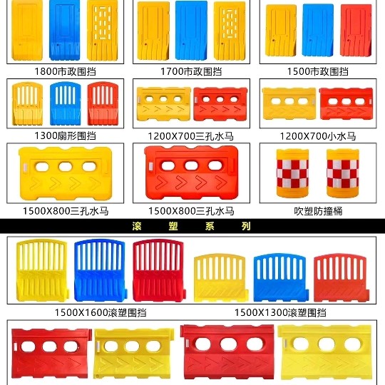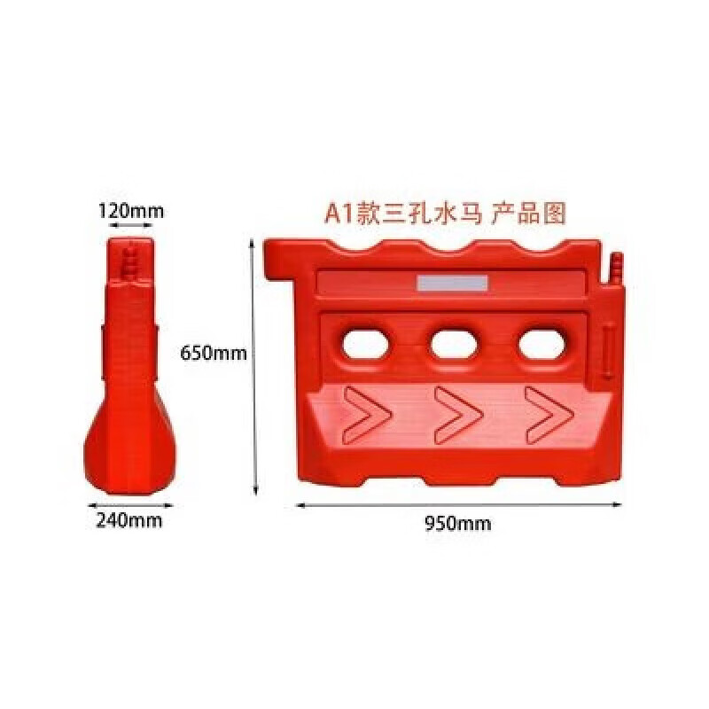 注水围挡三孔水马隔离墩移动护栏防撞桶塑料吹塑滚塑交通施工安全