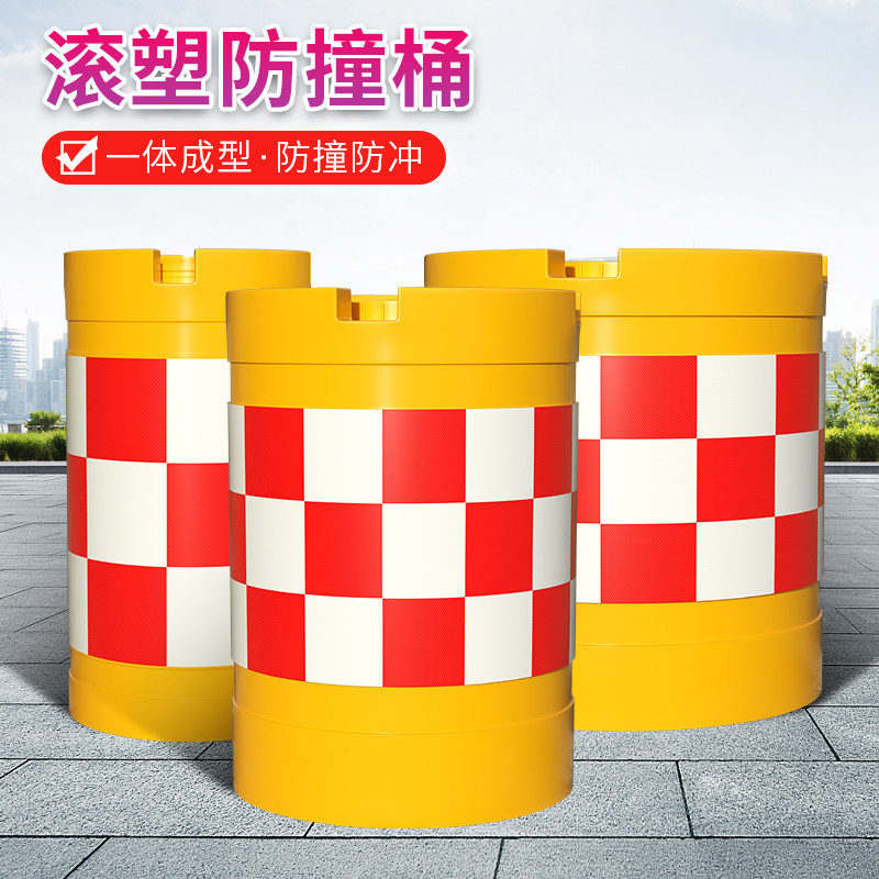 防撞桶圆柱形滚塑防撞桶道路交通塑料隔离墩注水分流桶警示反光桶