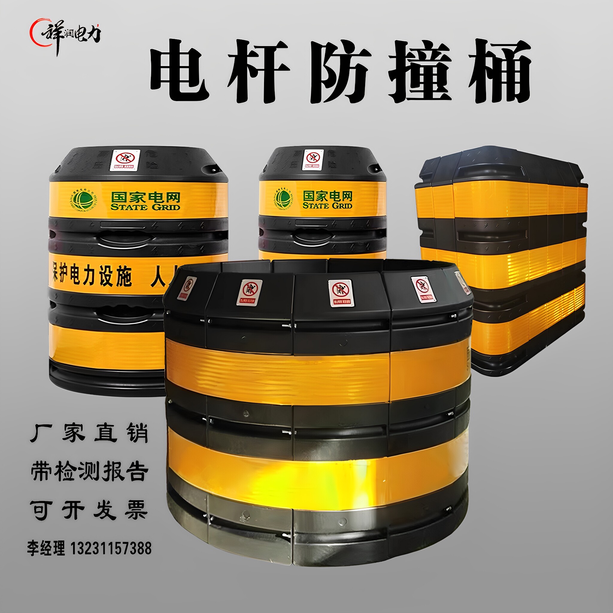 厂警家电力防桶反光膜电杆防撞墩交通安全防180撞护设施示防线撞