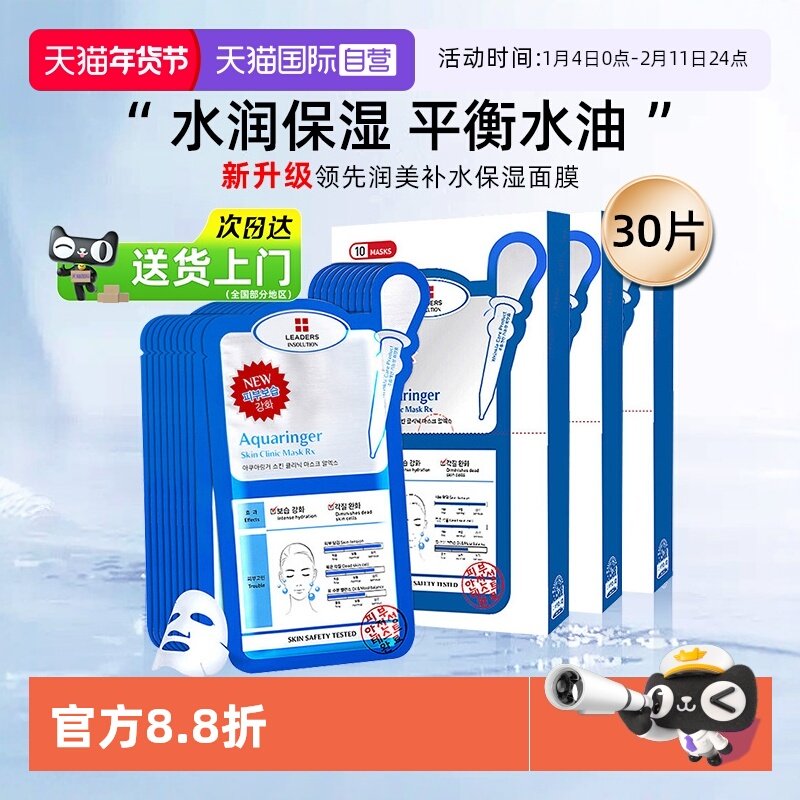 韩国LEADERS丽得姿领先润美水库补水面膜保湿水光修护滋润1代10片