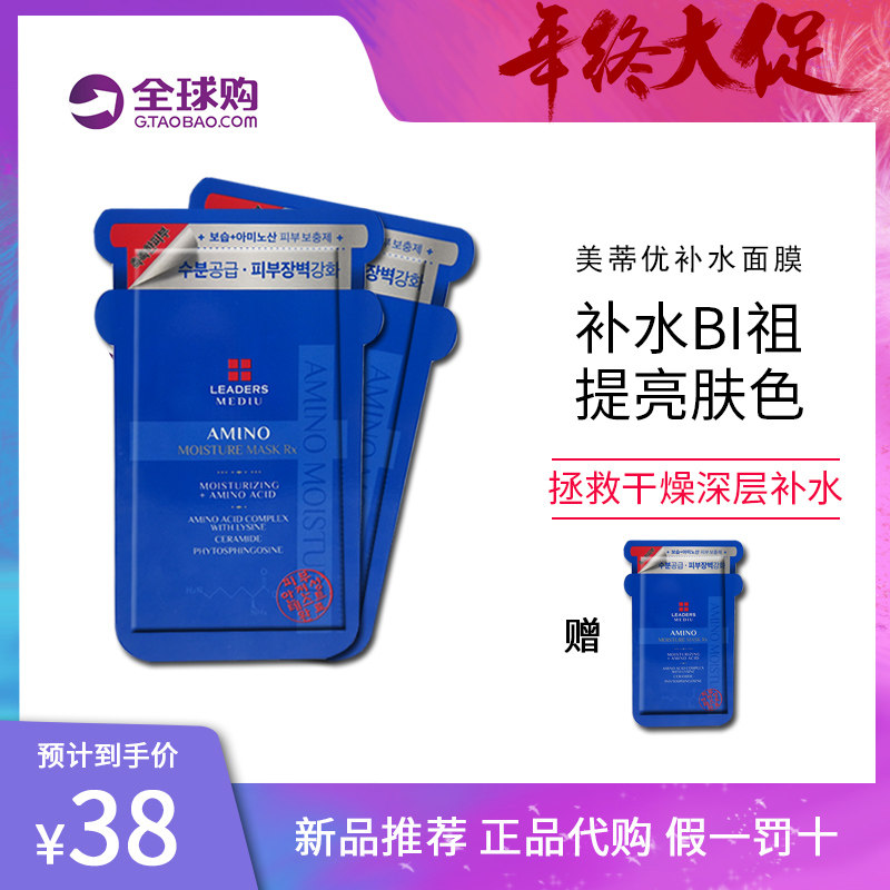 三盒88元韩国Leaders丽得姿面膜美蒂优第四代水库氨基酸补水10片