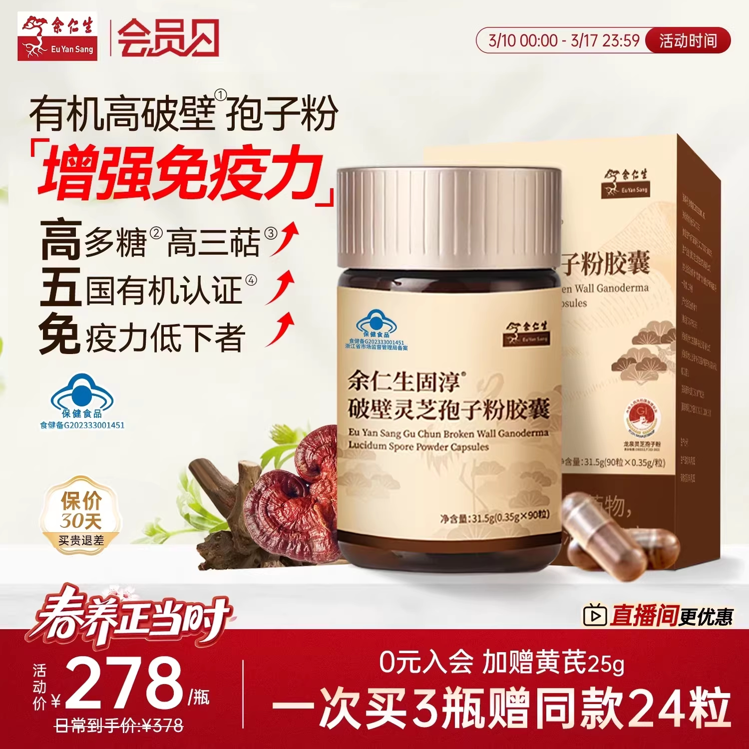 余仁生固淳破壁灵芝孢子粉胶囊90粒官方旗舰店正品有机热销热卖