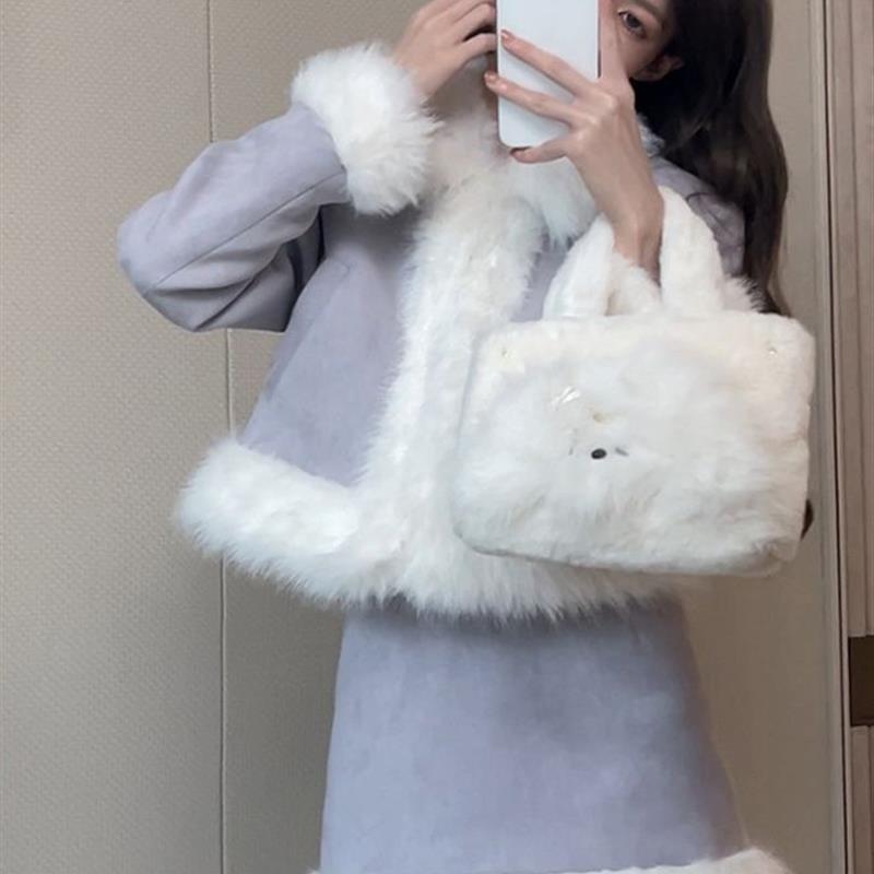 2024新款气质时尚感香芋套装女毛毛层次感慵懒外套开衫半裙秋冬