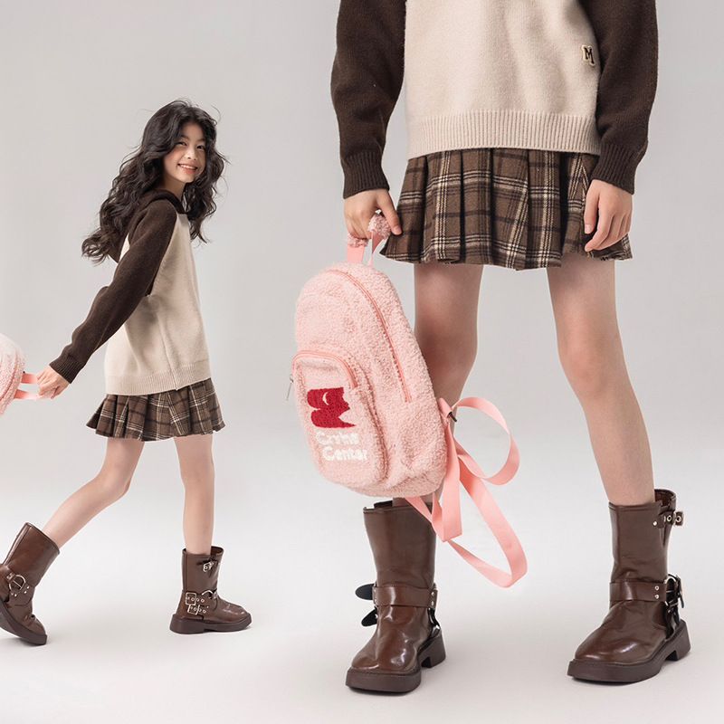 Little Naive女童木耳边休闲半裙秋冬款麂皮绒裙子儿童飘逸半身裙