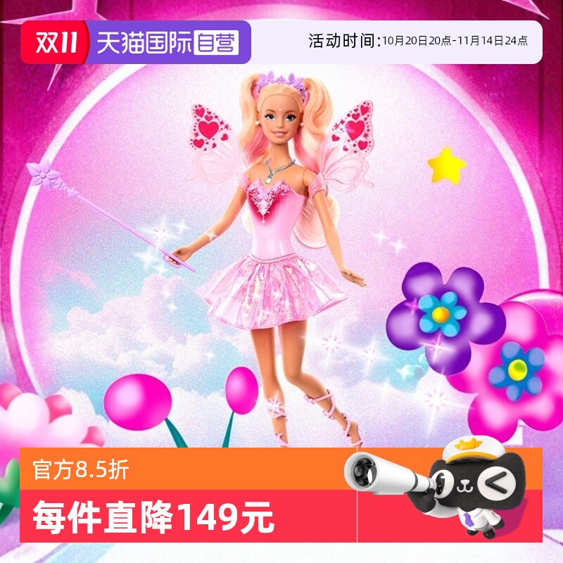 芭比可变色梦幻蝴蝶仙子Barbie娃娃公主女孩玩具生日礼物女生可爱