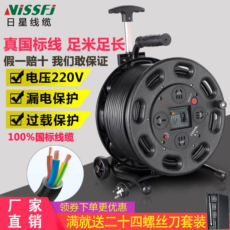 日星电缆盘移动线盘空盘收接线卷线盘50米插排线滚子电线收线盘轮