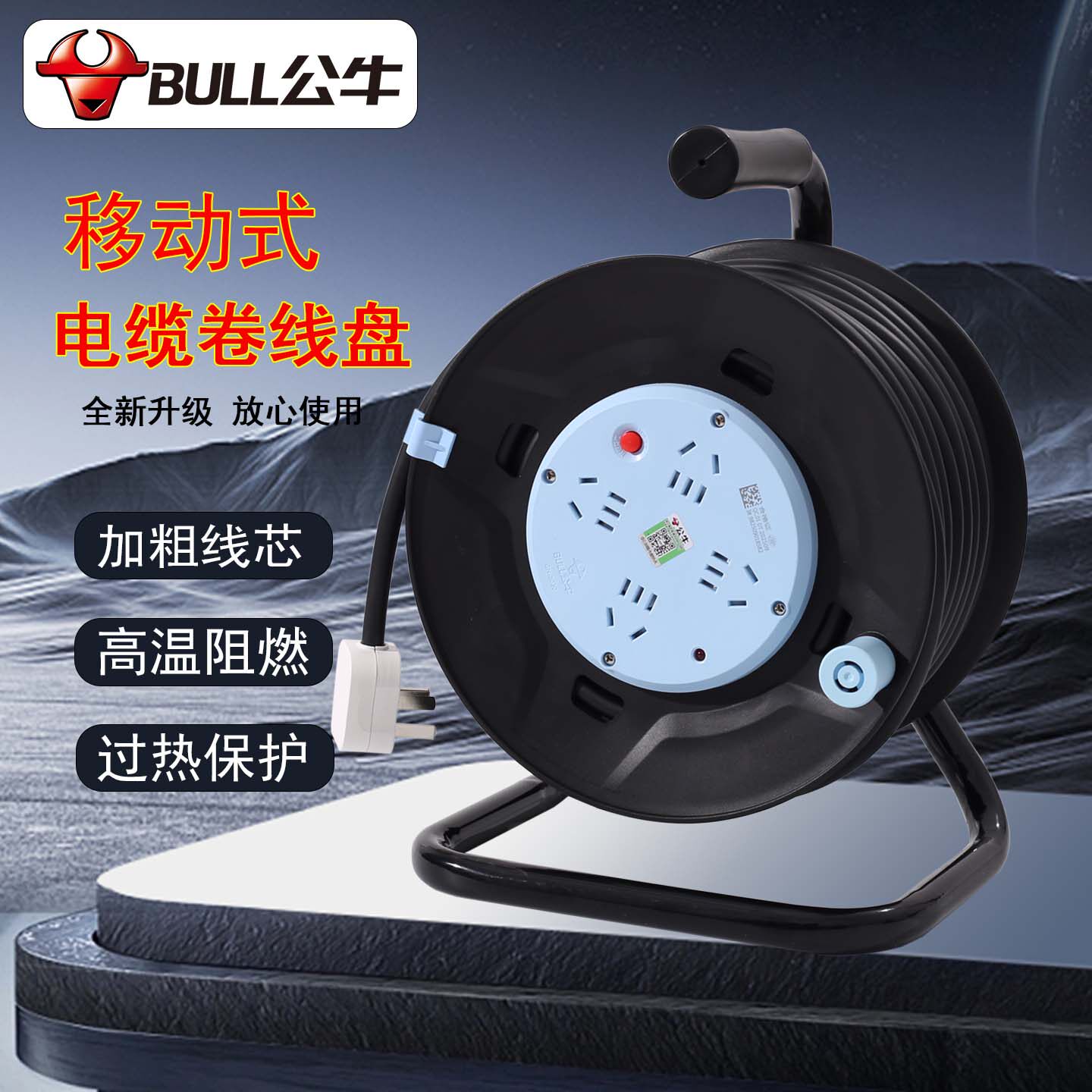 公牛移动线盘电缆盘8030卷线盘缠线盘电线绕线盘20/30/40米延长线