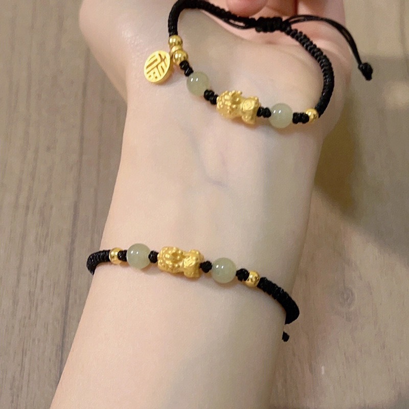 999足金黄金貔貅转运珠手链女红绳编织送女友男士礼物情侣新款