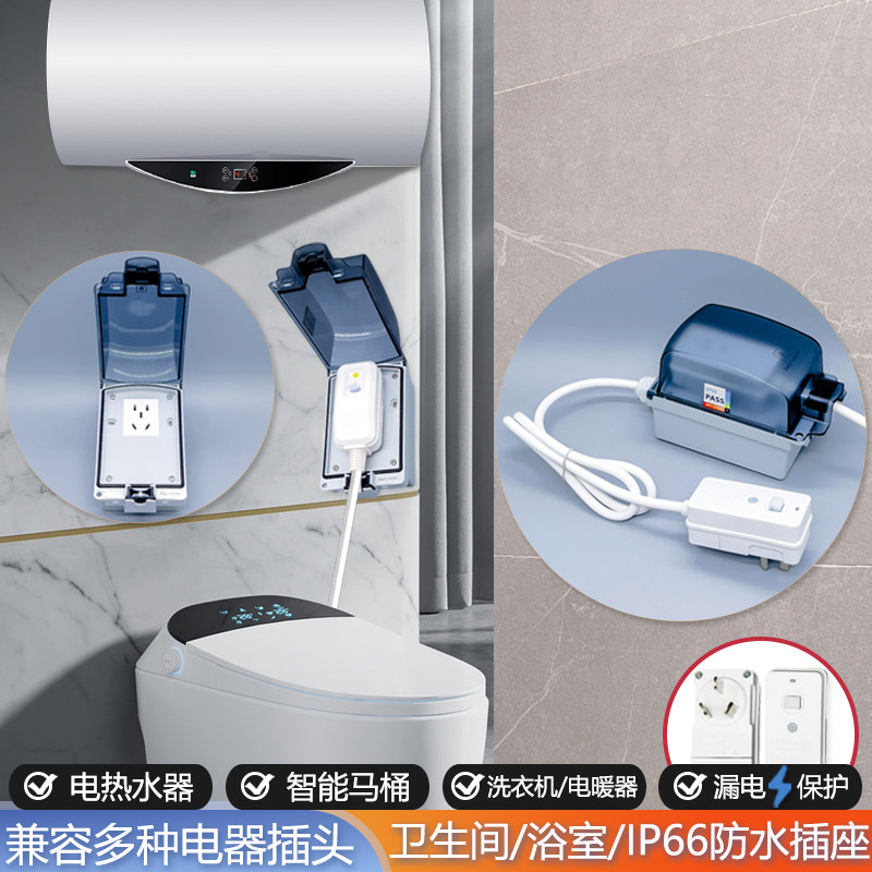 智能马桶插座防水罩浴室卫生间热水器加长保护盖86型加大防水溅盒