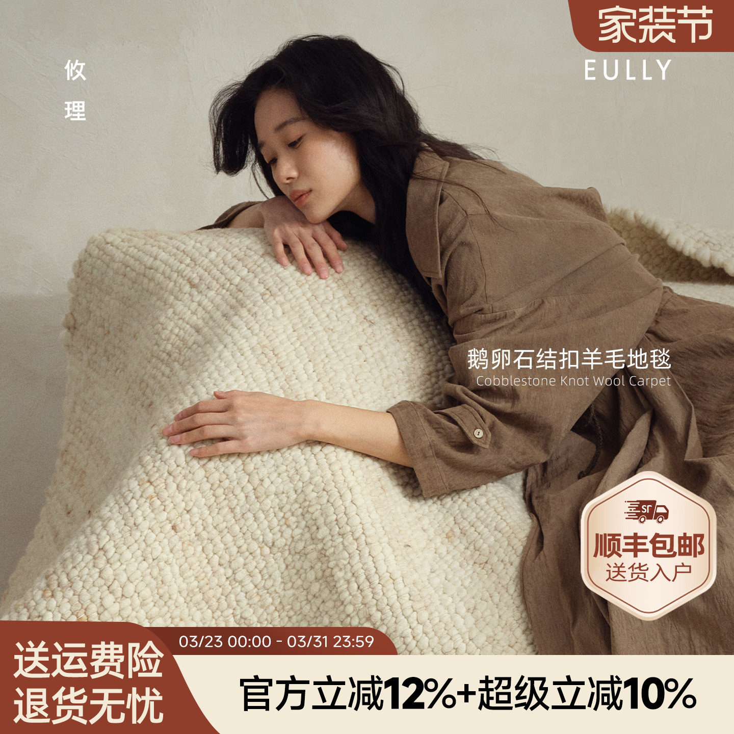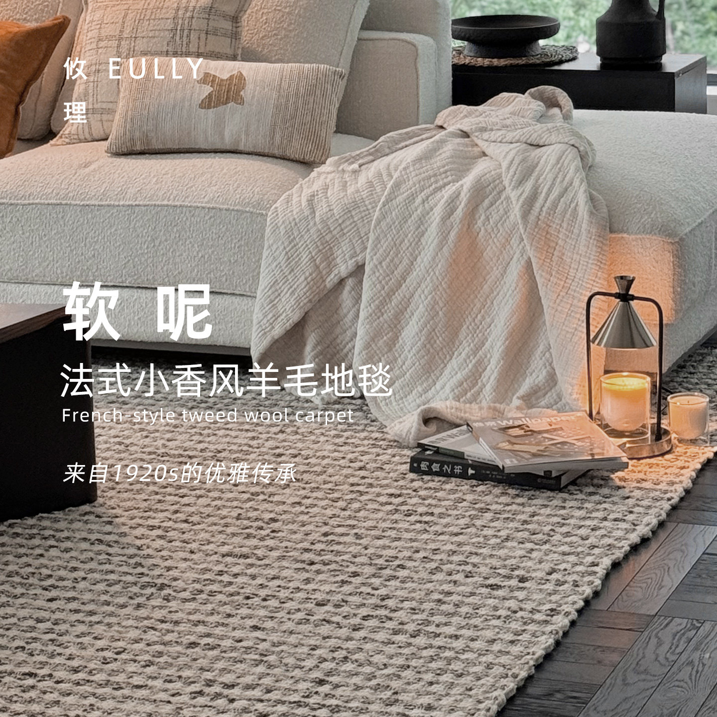 攸理eully织风 进口手工编织羊毛地毯客厅卧室新款轻奢高级羊毛毯