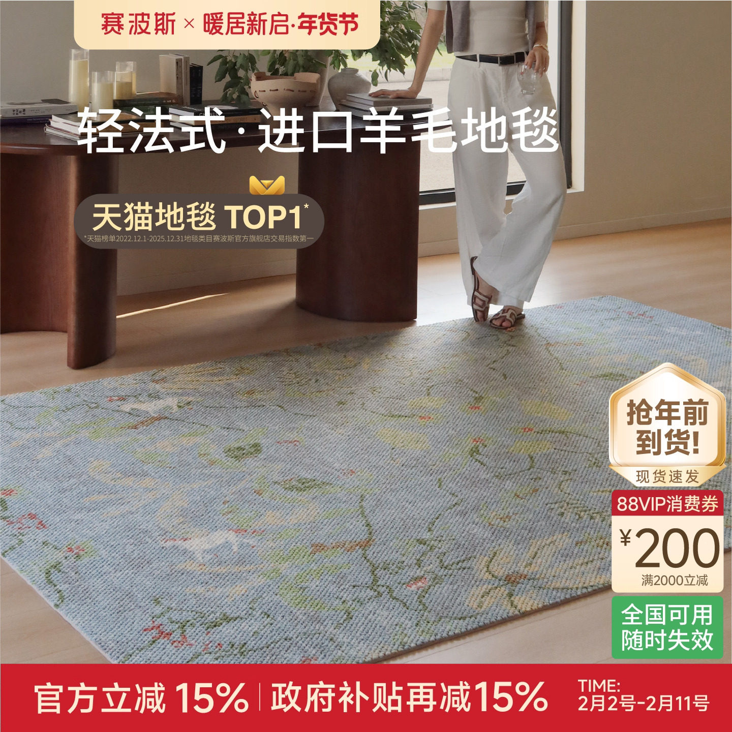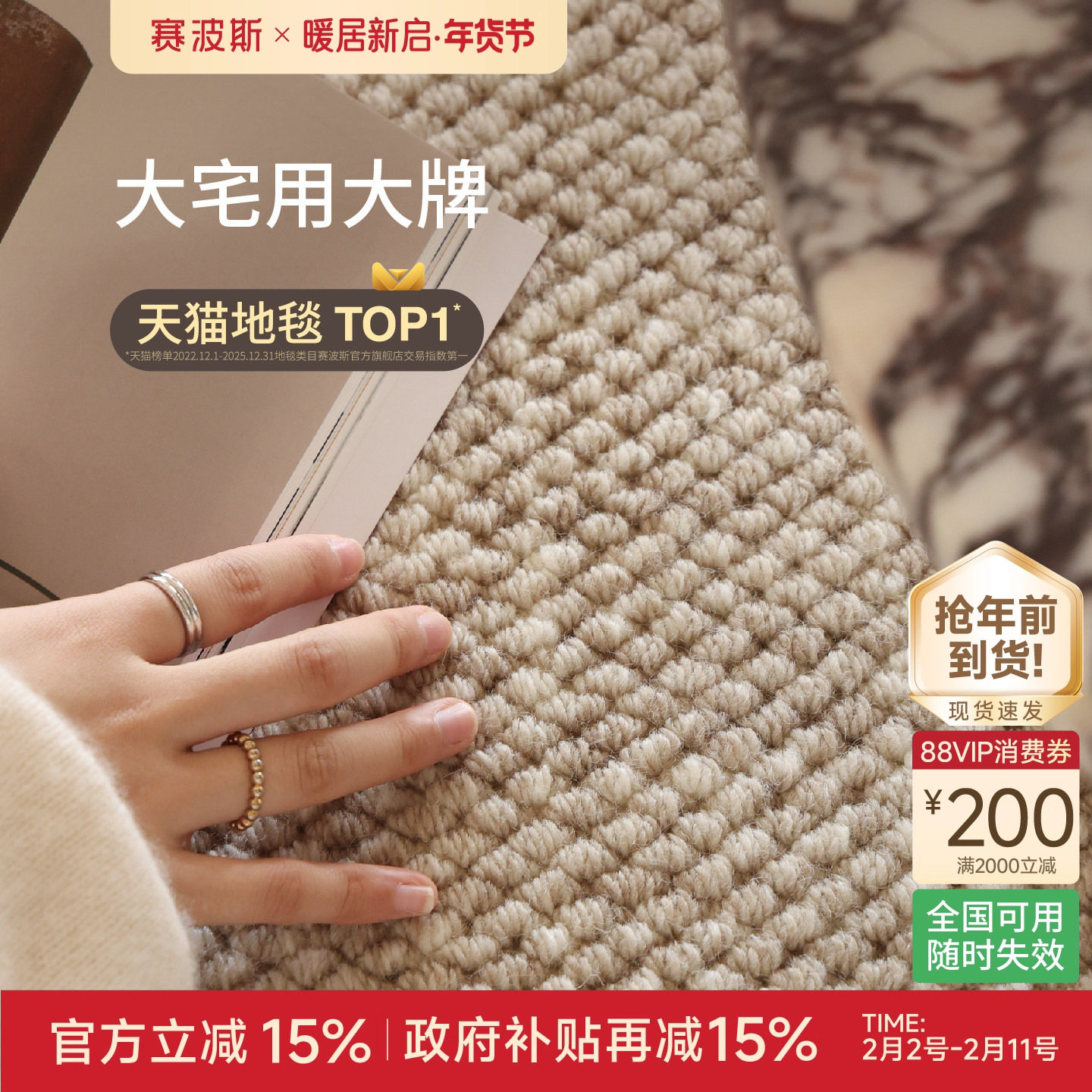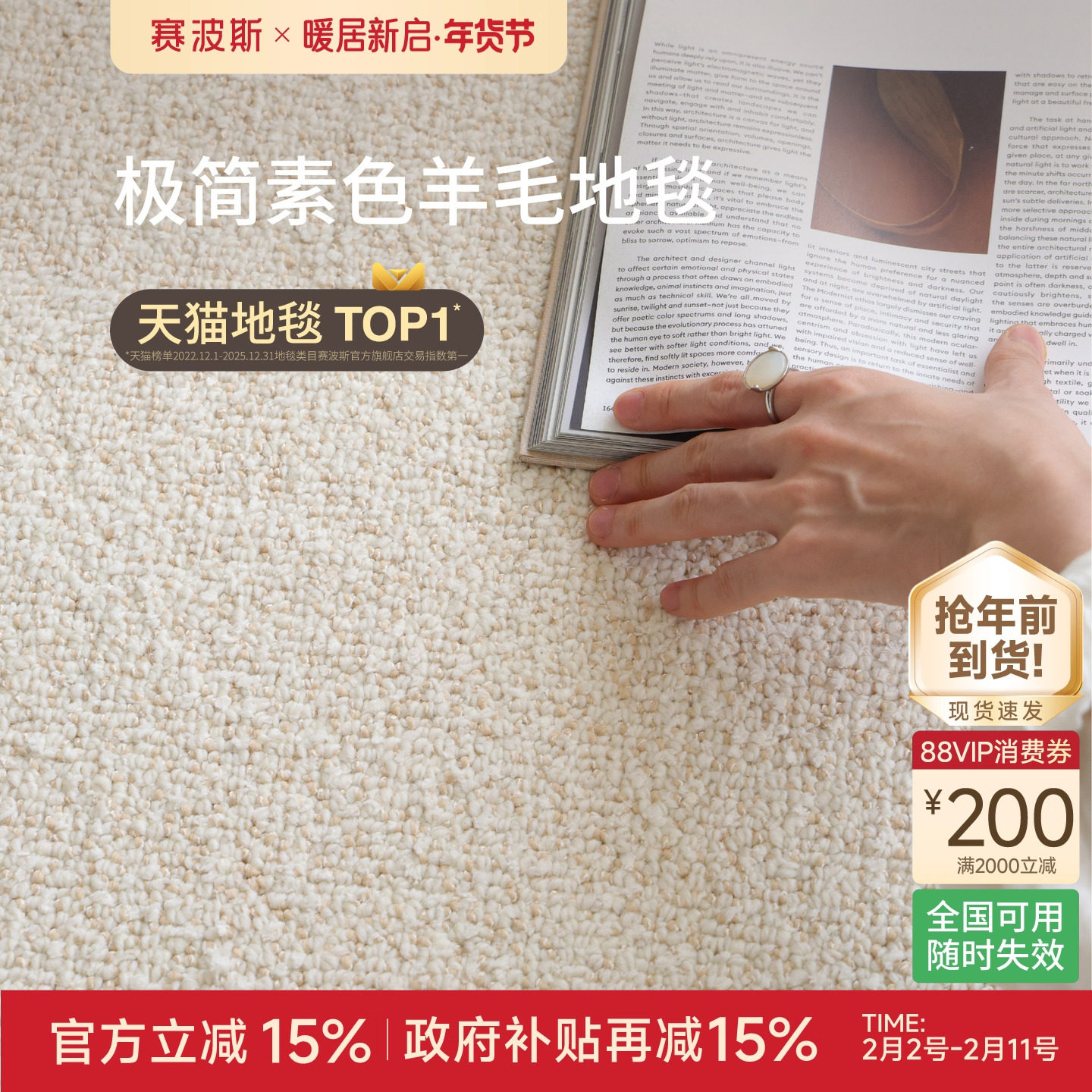 赛波斯云织毯进口全羊毛地毯无胶客厅素色中古轻奢高级感沙发卧室