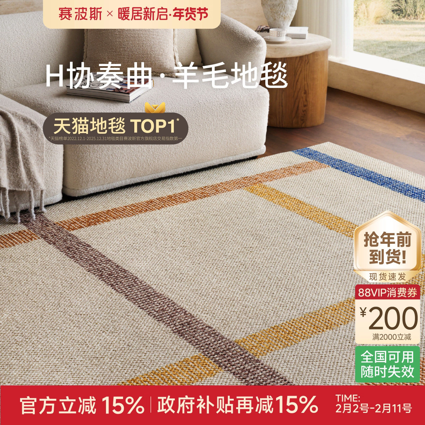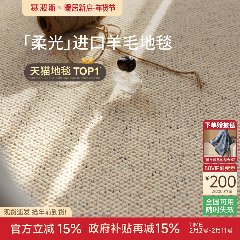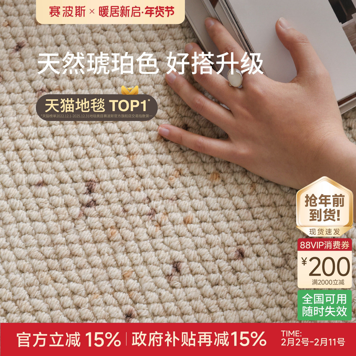 赛波斯云织毯进口全羊毛地毯无胶客厅素色中古轻奢高级感沙发卧室