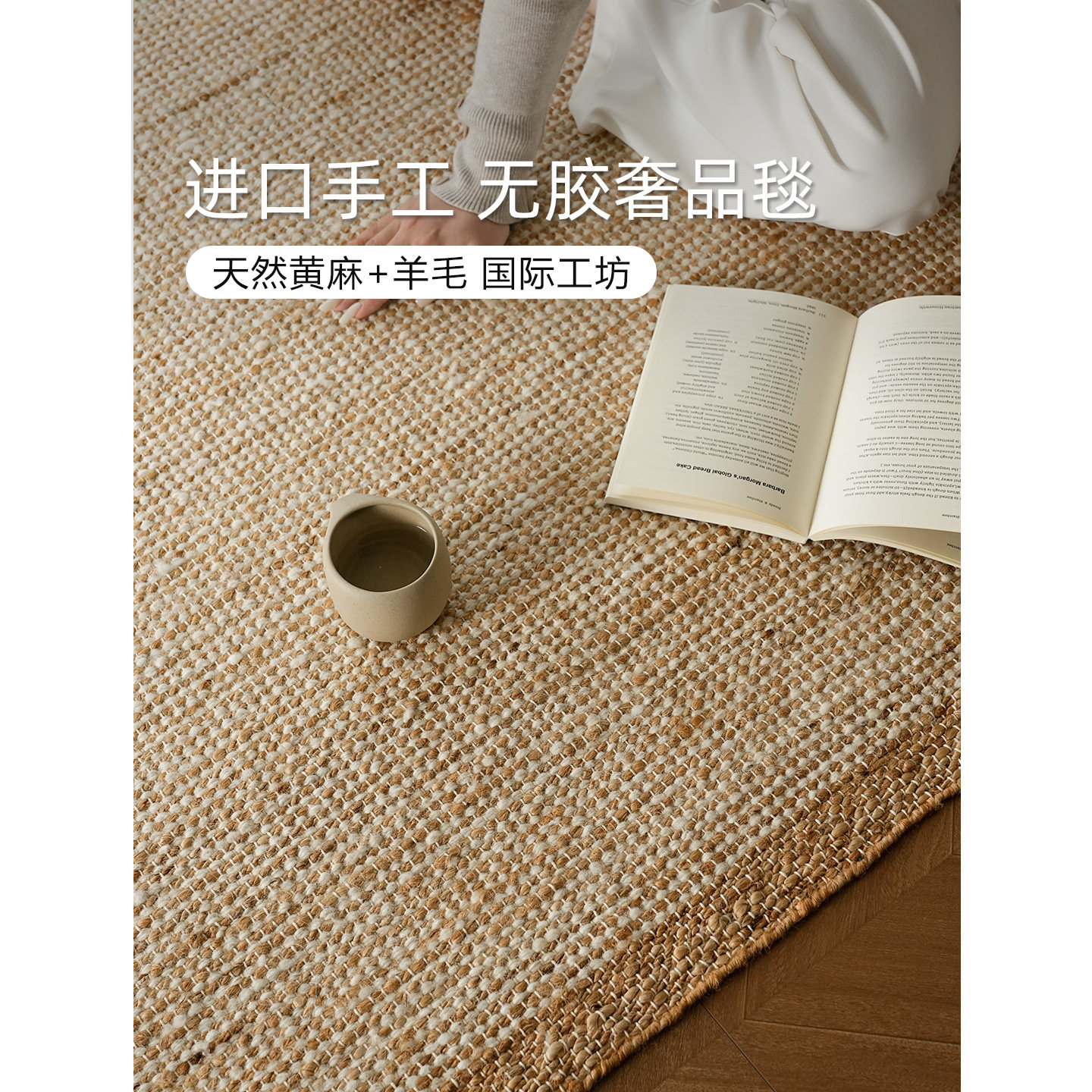伽音/2026新款无胶手编客厅地毯 中古风天然黄麻羊毛混编地暖可用