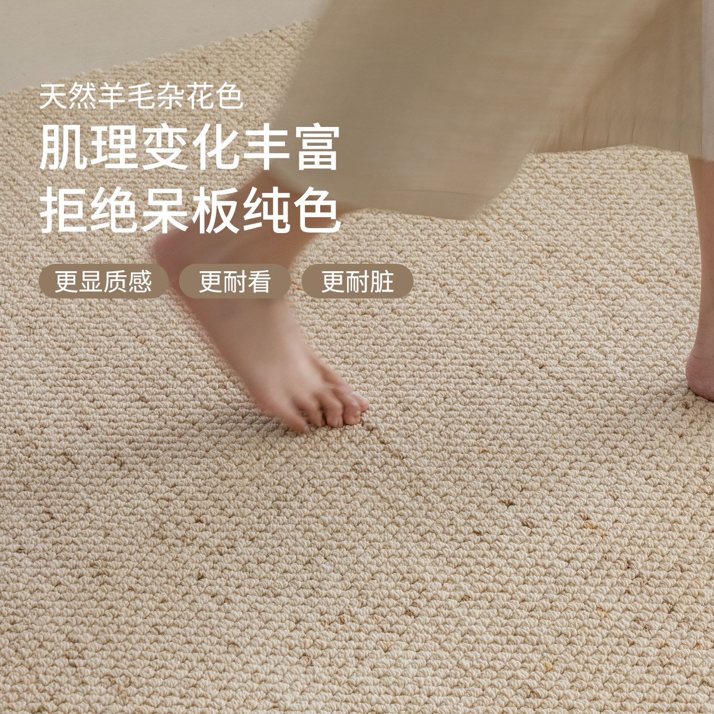 新西兰进口客厅羊毛地毯轻奢高级侘寂风耐脏卧室纯色地毯2025新款
