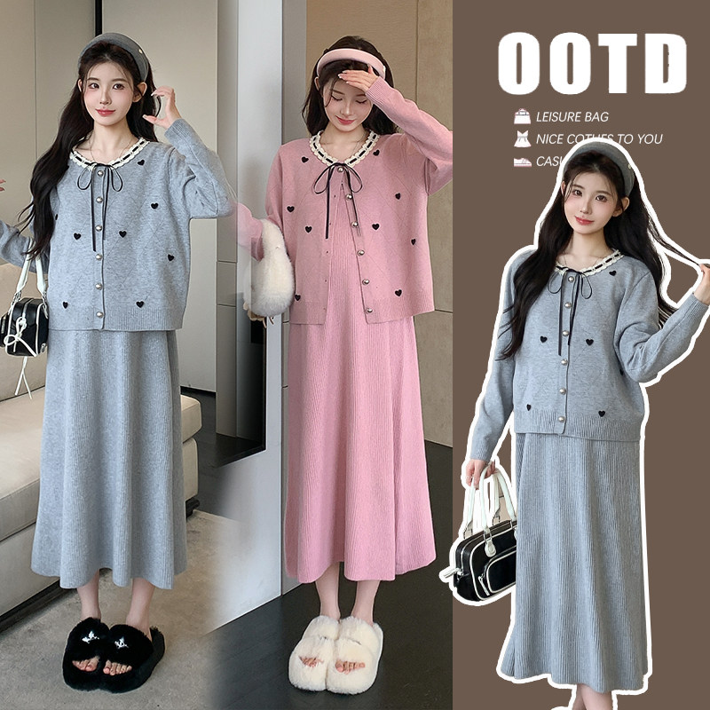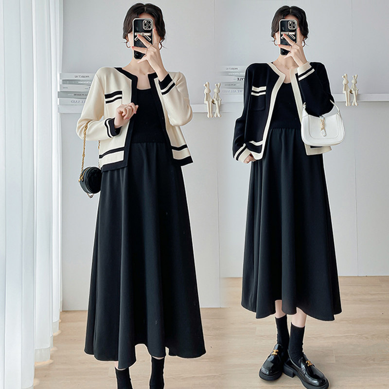 孕妇春装连衣裙套装春秋时尚针织吊带裙两件套甜美减龄中长款裙子