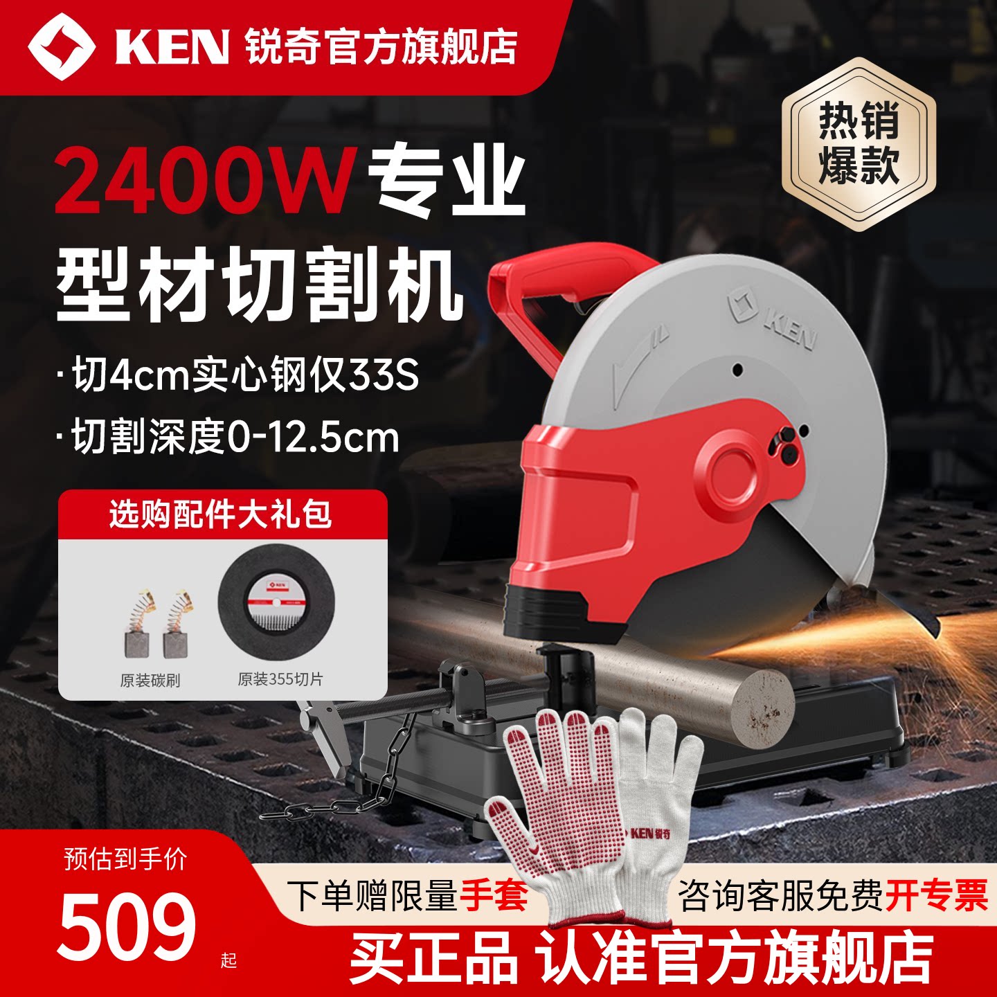 KEN锐奇钢材切割机大功率专业型材切割机多功能家用切管机7614