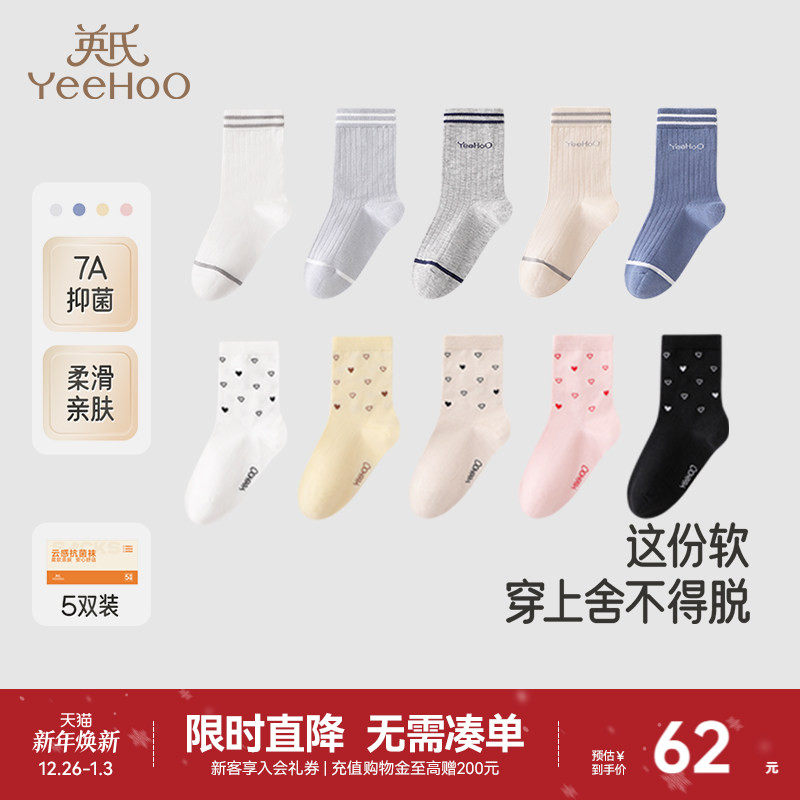 英氏宝宝袜子中筒袜男童女童秋冬加厚隔凉袜地板袜防滑学步儿童袜