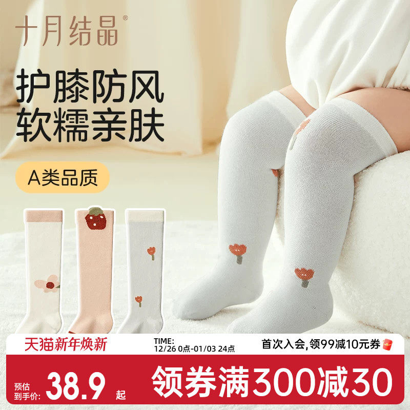 十月结晶婴儿袜男女童长筒袜春秋款新生宝宝袜子儿童春季棉袜3双