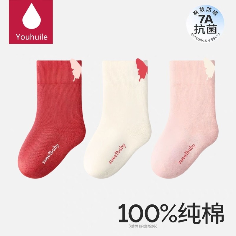 喜得瑞宝宝袜子春秋纯棉婴儿中筒袜女孩冬季女童儿童可爱学生短袜