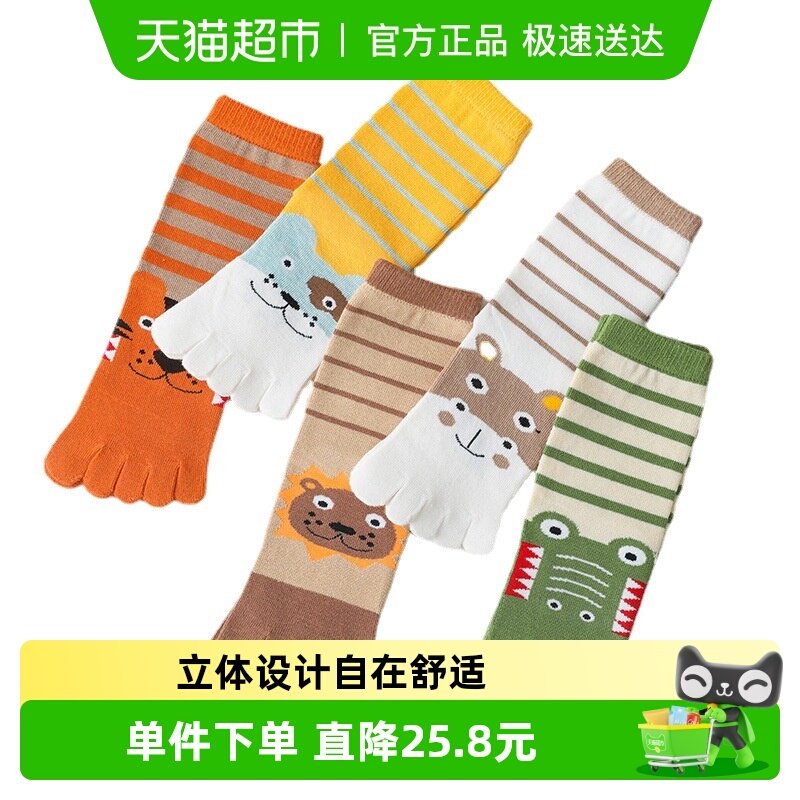 儿童五指袜男童分趾袜女童宝宝袜子男纯棉脚趾袜分指女中筒春秋冬
