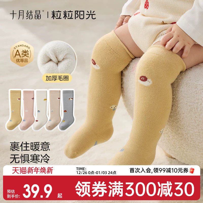 十月结晶婴儿袜男女童长筒袜秋冬款新生宝宝袜子儿童加厚毛圈3双
