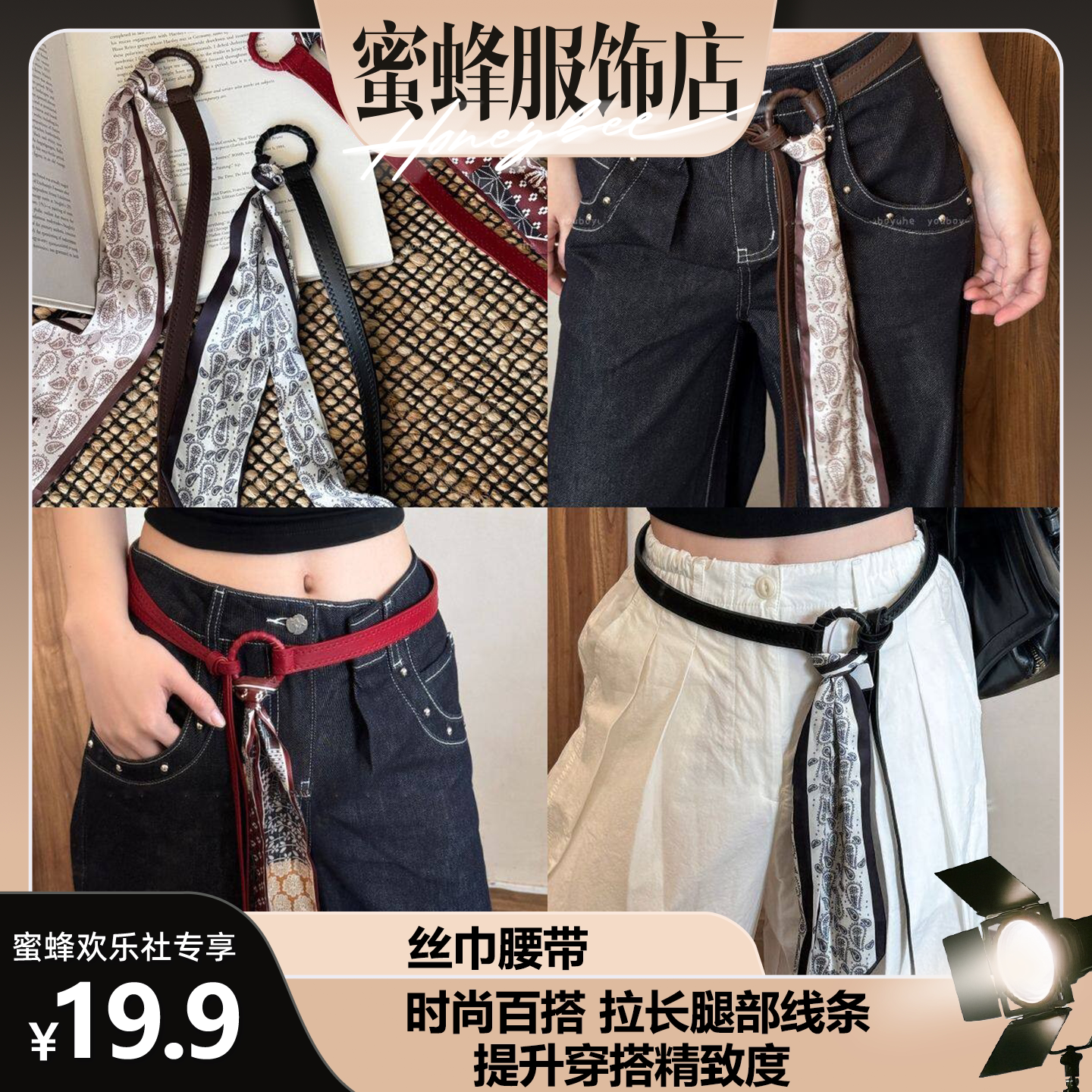 美式红色丝巾腰带配饰女港风复古小众设计装饰腰链牛仔裤腰间皮带