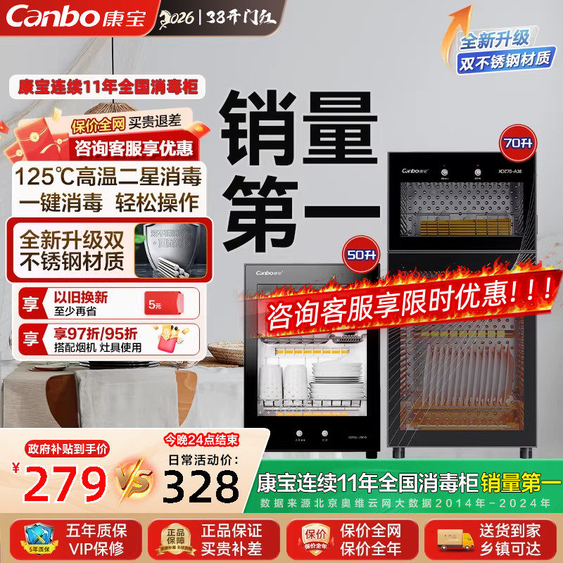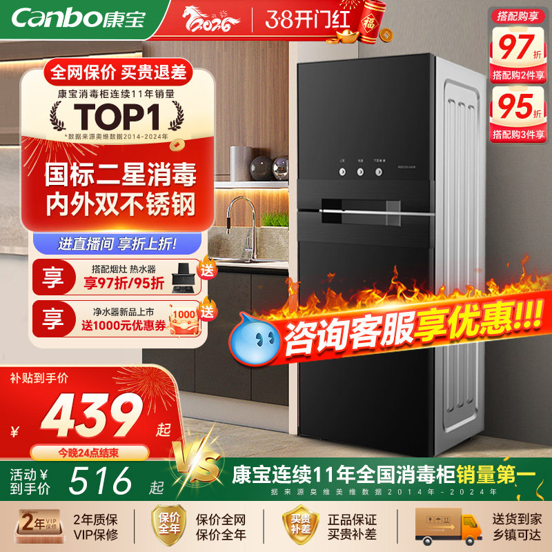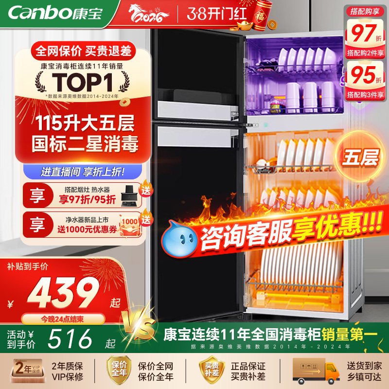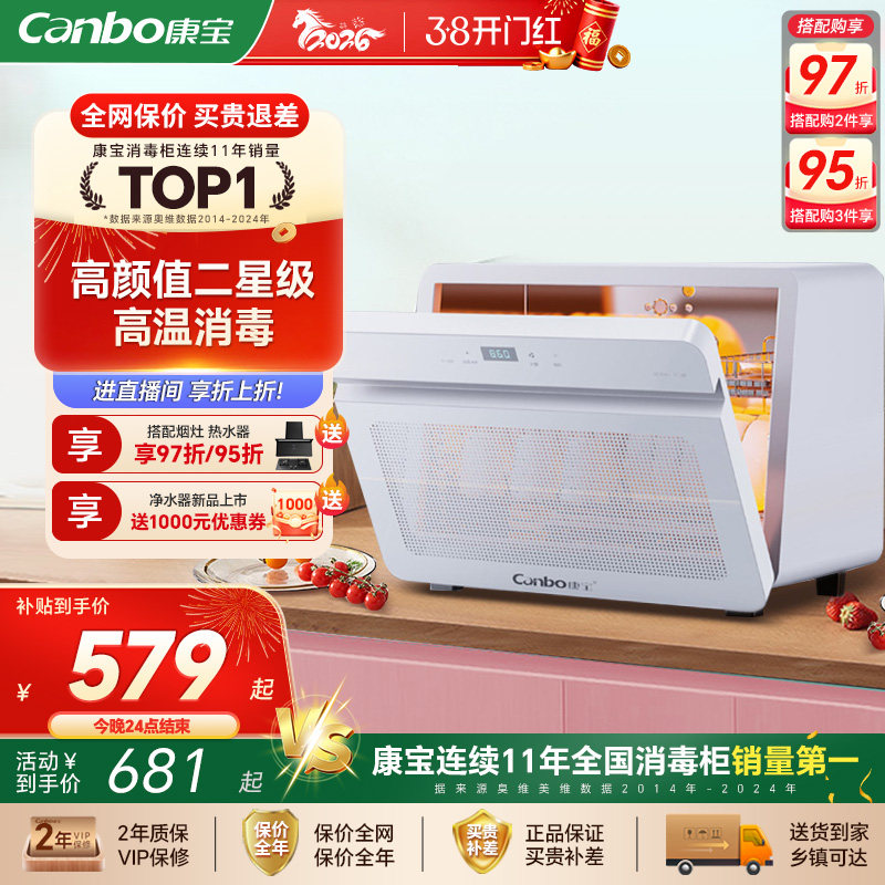 康宝消毒柜家用立式小型碗柜碗筷台式无臭氧星级烘干一体高温商用