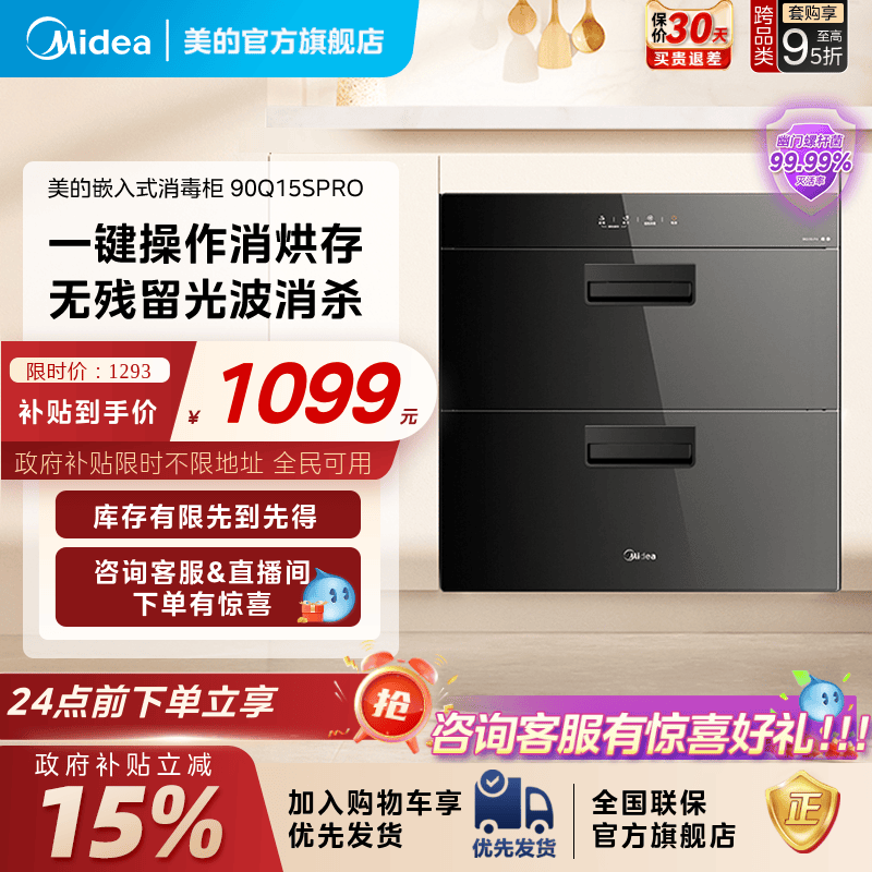 美的90Q15SPRO消毒柜家用嵌入式厨房碗柜碗筷烘干一体官方旗舰店