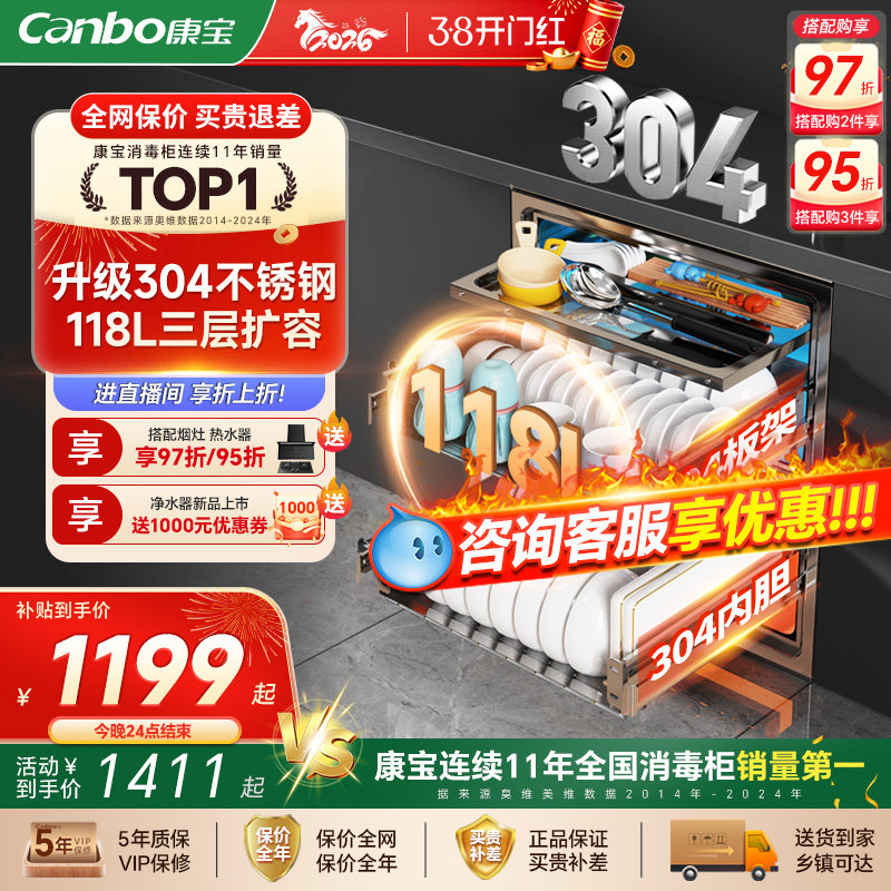 康宝消毒柜嵌入式家用新款厨房碗筷烘干一体机碗柜官方旗舰店正品