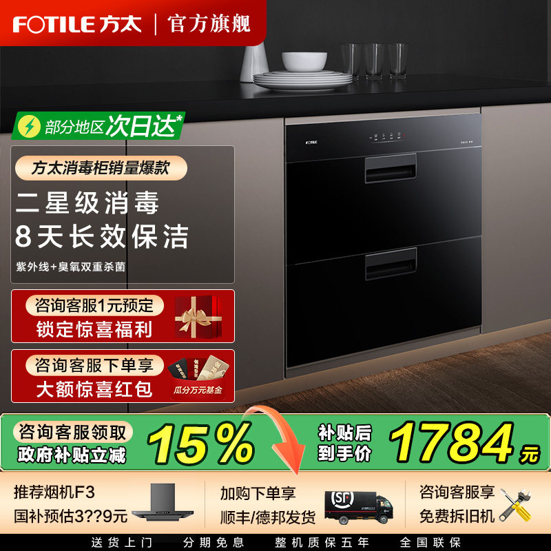 方太消毒柜J75家用小型嵌入式不锈钢厨房碗筷烘干碗柜官方旗舰店
