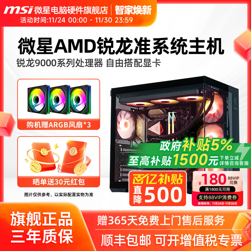 微星AMD准系统主机7500F/9600X/9700X/7800X3D/9800X3D核显无卡台式电脑整机高配游戏电竞海景房DIY组装机