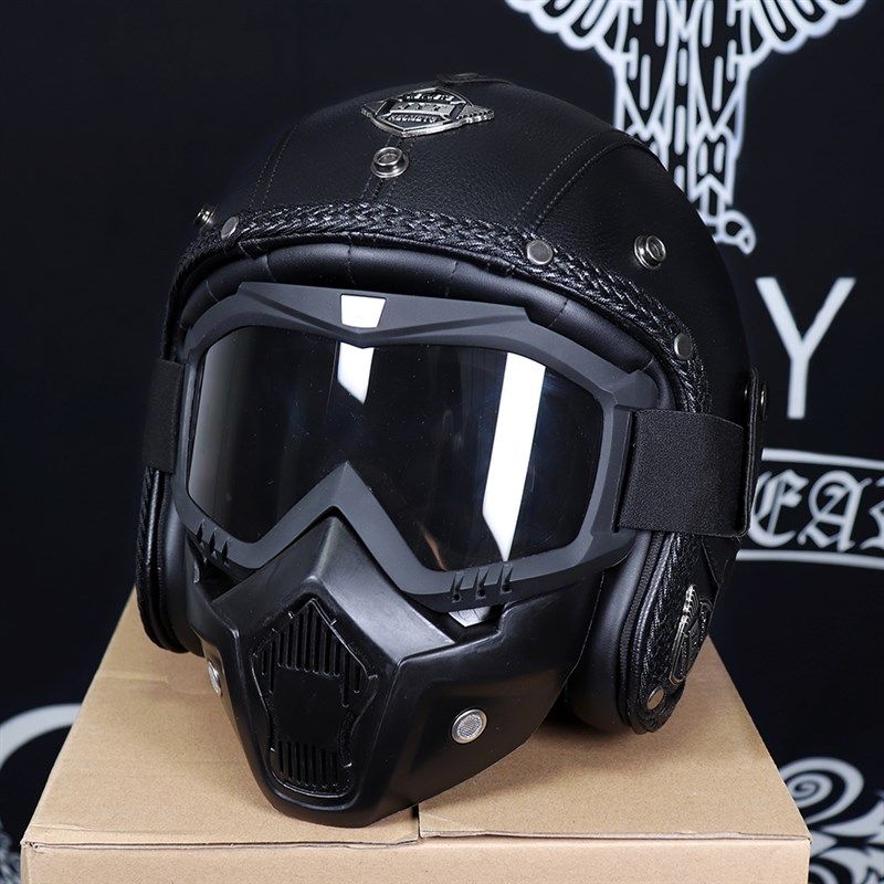 beon复古头盔摩托车双镜片四分之三巡航半盔男女哈雷机车四季帽3C