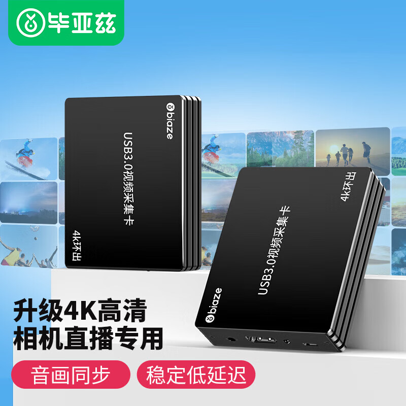 毕亚兹 高清视频采集卡器4K环出 适用PS4/Switch笔记本电脑手机游戏直播会议音视频USB3.0录制盒