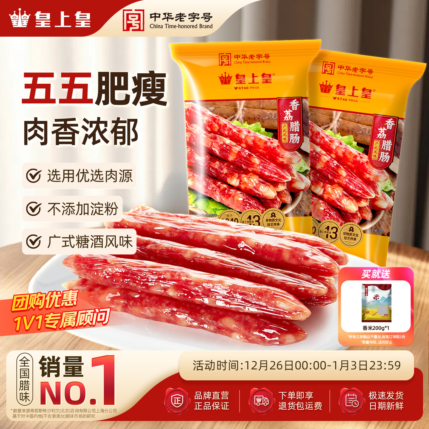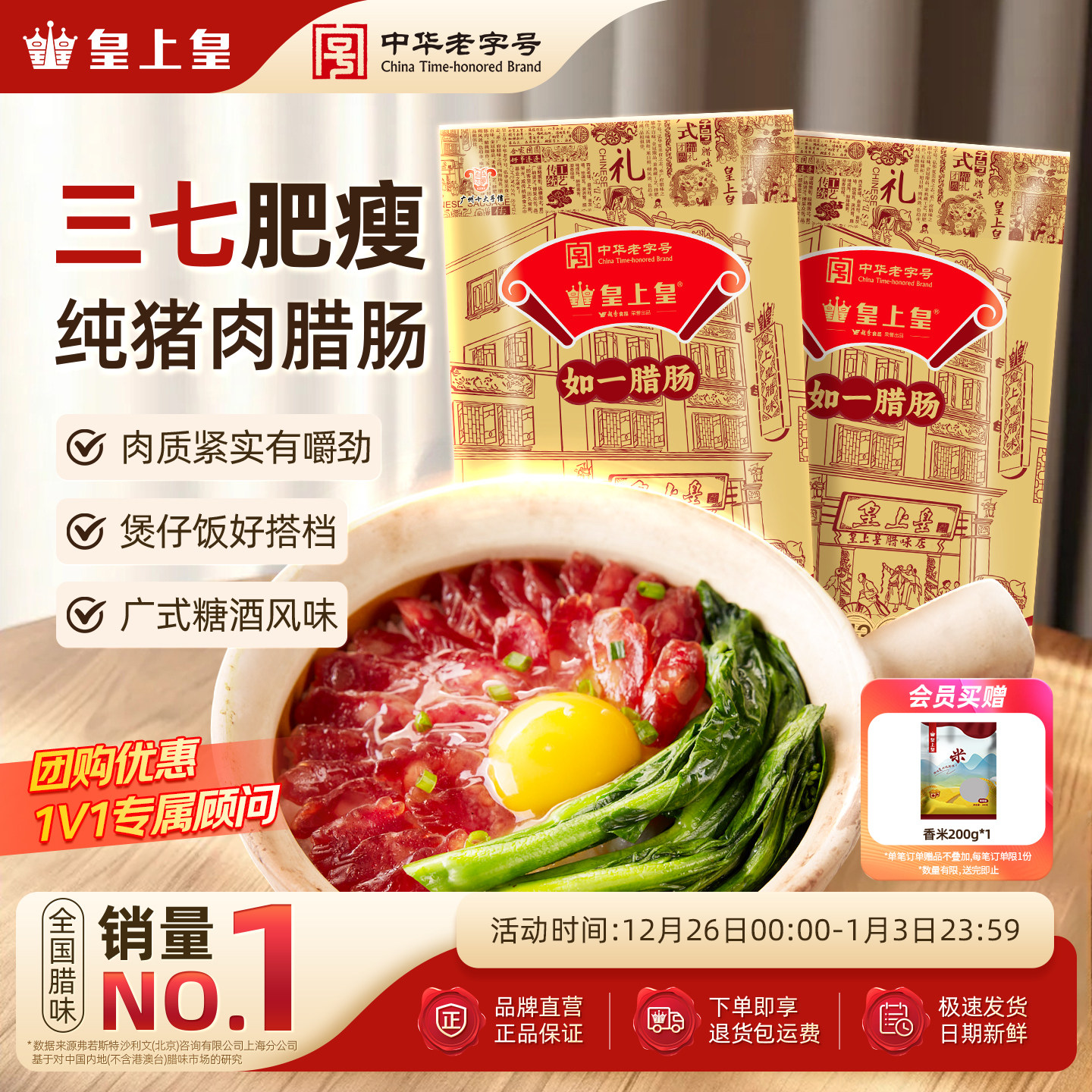 皇上皇如一腊肠400g*2包广式腊肠腊味甜味老广东广州特产送礼