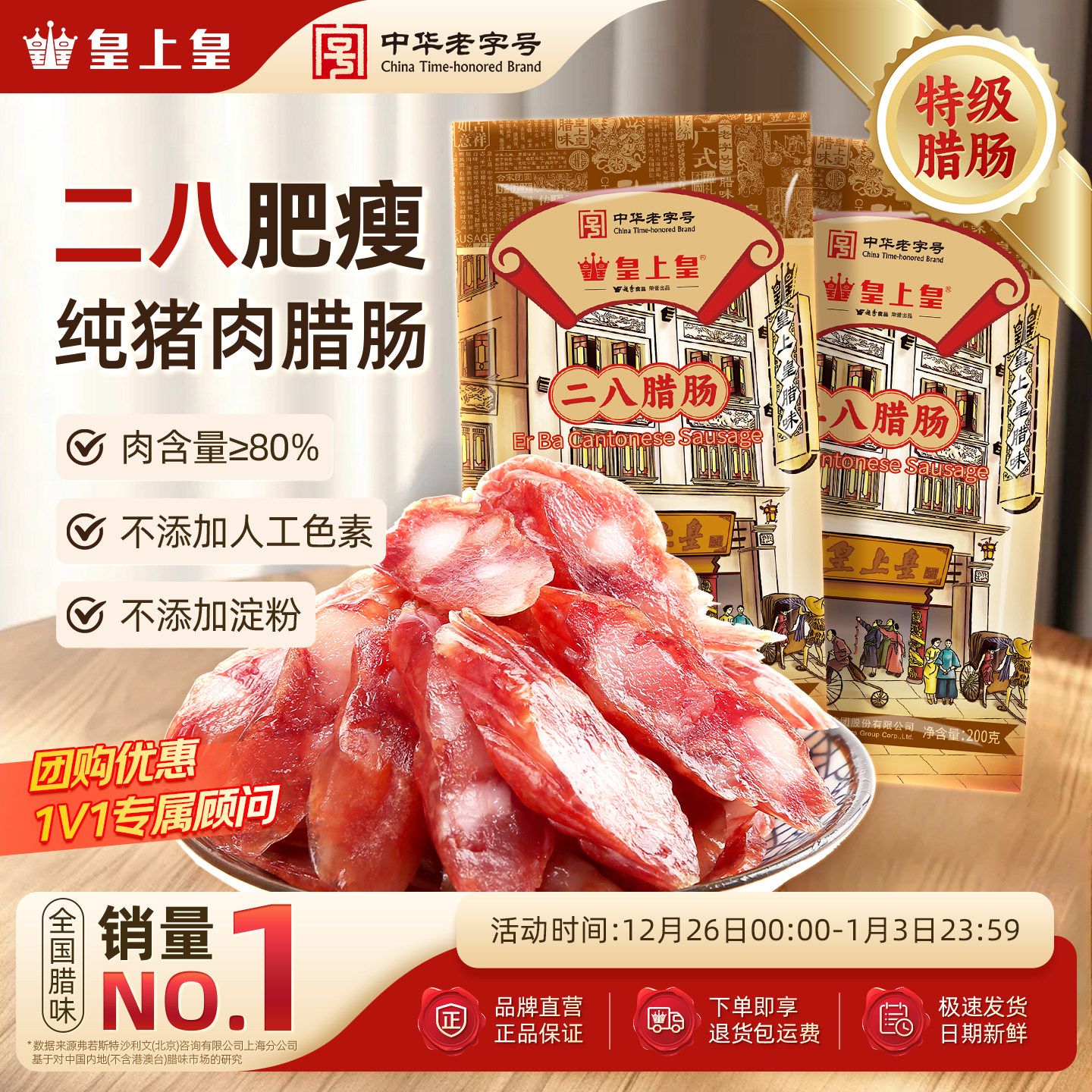 皇上皇二八腊肠200g*2广式腊味正宗广东特产广味香肠送礼囤货广州