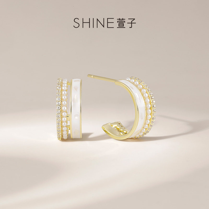 【官方正品】SHINE萱子饰品双圈珍珠耳环轻奢高级感C圈耳钉送礼物