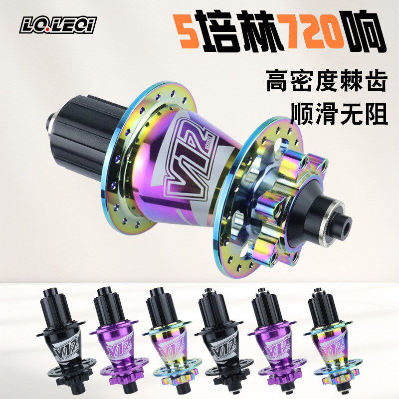 lqleqi v12山地自行车花鼓5培林720超响12爪棘轮卡式碟刹轮毂32H