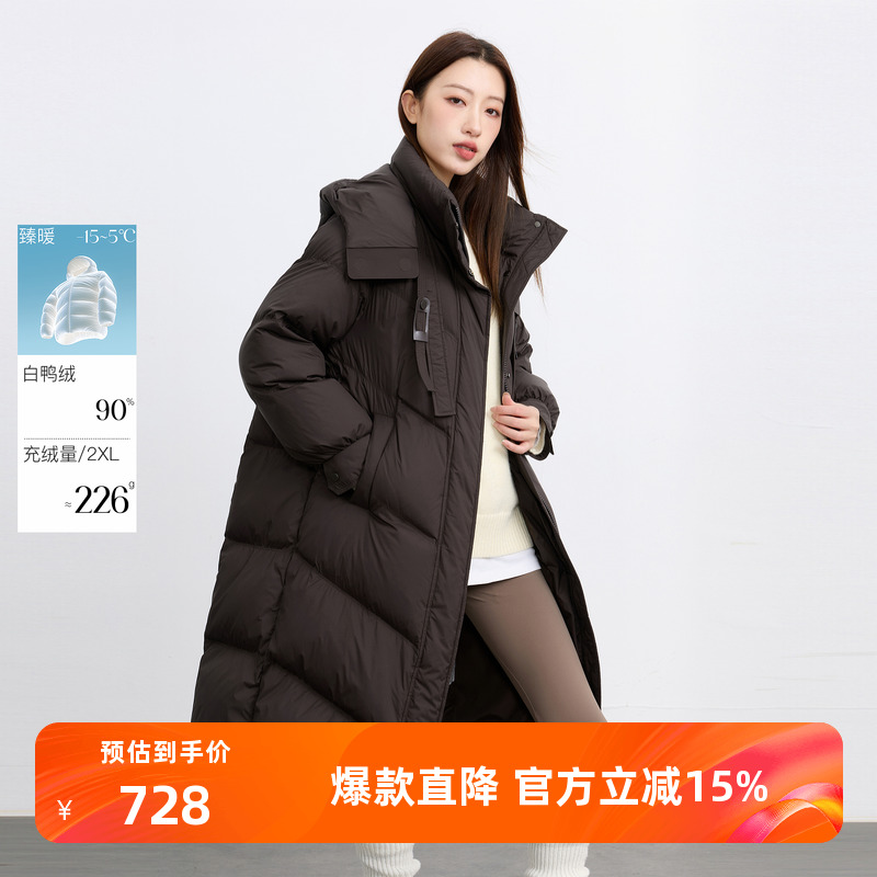 陈都灵森马羽绒服女冬长款90绒三防抗静电2025新款纯色连帽