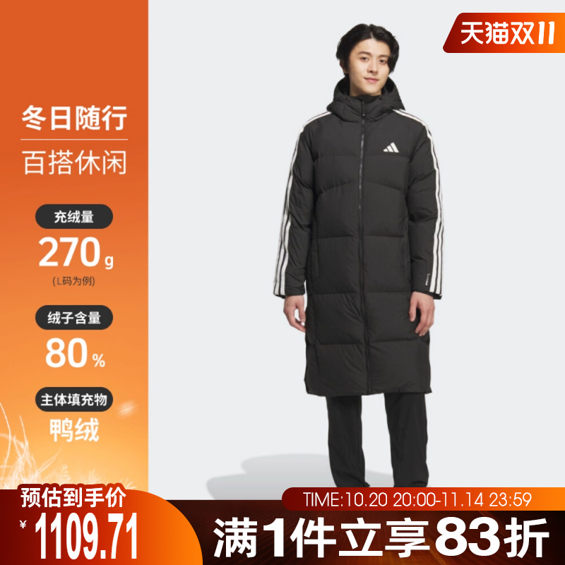 adidas阿迪达斯男子羽绒服长款连帽保暖外套休闲户外上衣KC2498