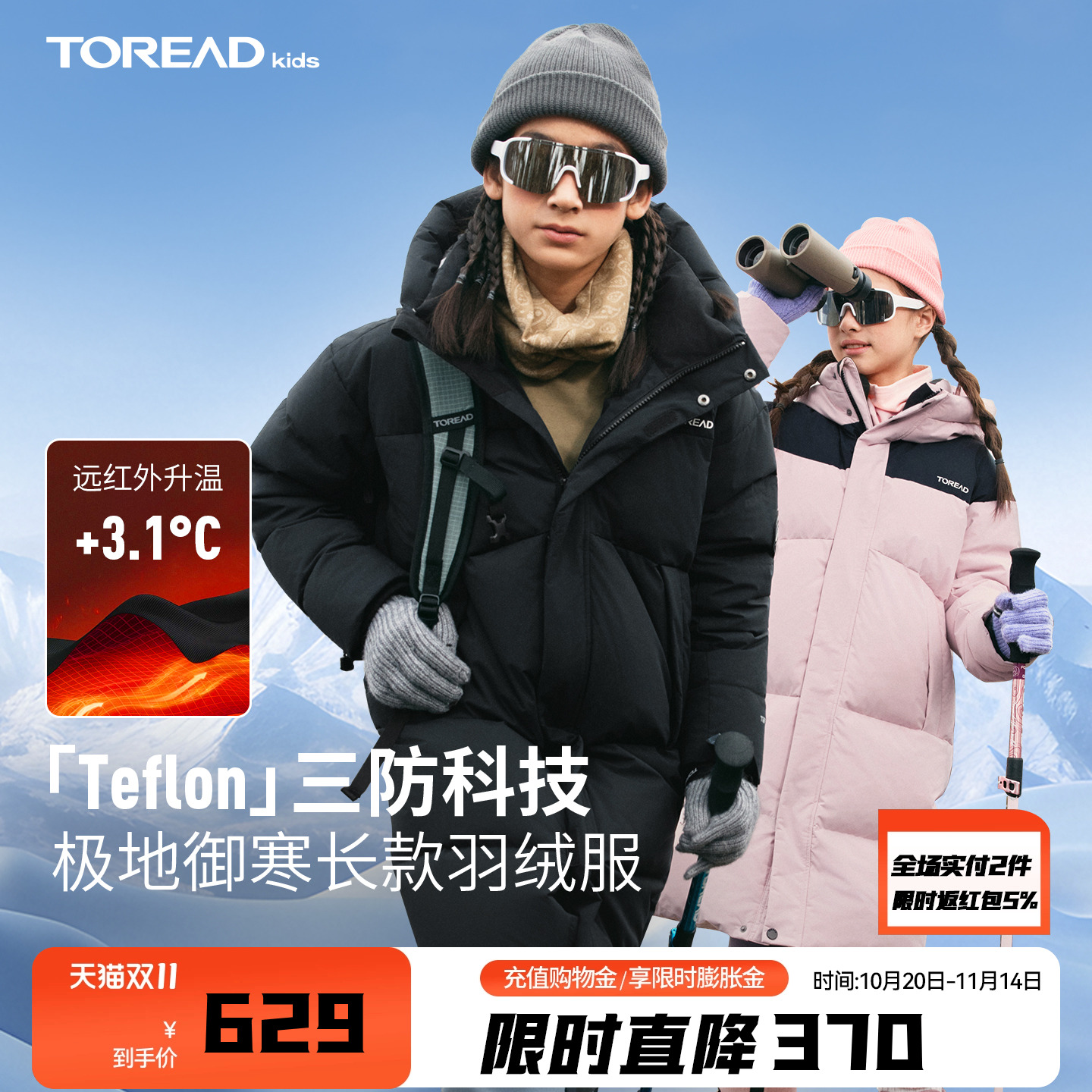 探路者儿童羽绒服长款25年新款冬季连帽三防加厚保暖男女童羽绒服